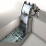 It is the goal to completely separate floating, settling and suspended material, depending on the bar spacing, and remove the material prior to discharging it into a container.