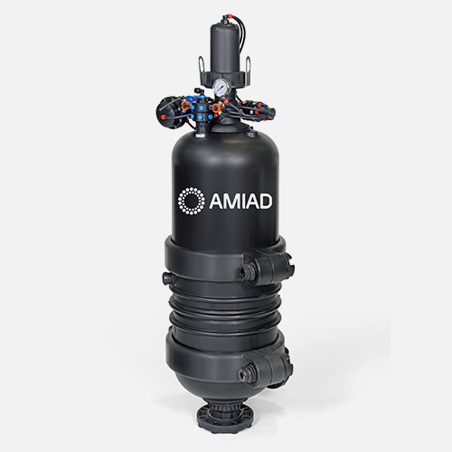 Multi-screen polymeric, self-cleaning filter combining Amiad’s suction-scanning screen technology with an innovative compact design, a single hydraulic turbine and a smart gear